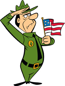 Ranger Rick from Jellystone National Park, probably saluting those who have sent the problems on the Ranger Rick Boulder