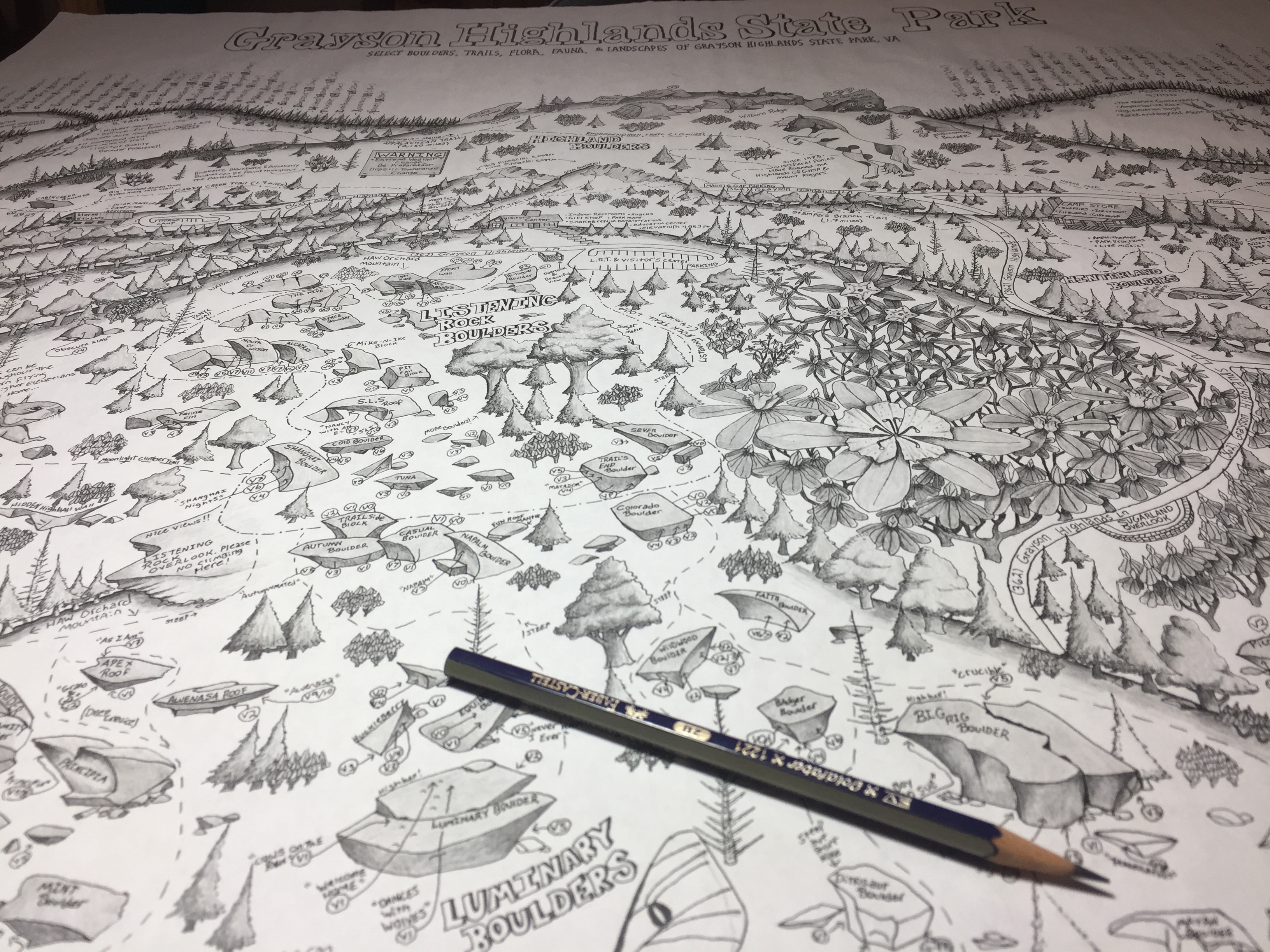 Close-up of the Grayson Highlands State Park Boulderfields and Landscape Map
